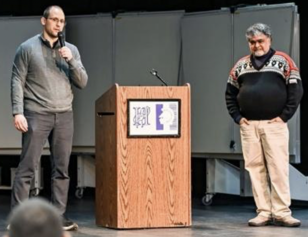 After the opening remarks and the video, Dawn introduced FIDE Master Sunil Weeramantry, whose deep connection to the school and to scholastic chess shaped everything that followed. Sunil took the stage with a calm and steady presence that immediately drew the room together. He thanked Dawn, acknowledged the community, and then began recognizing individuals in the audience—educators, organizers, contributors—each introduction offered with sincerity and appreciation. Some he invited to the stage to share a few words or to be acknowledged publicly, reinforcing a sense of community and shared purpose.